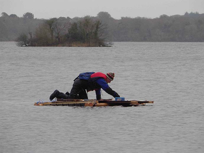 His work includes drawing painting sculpture and books. Recent works have all centred on using a raft as a floating drawing board to make large scale drawings on the lakes and sea near Sligo.