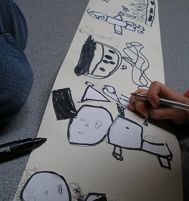 The first in a series of workshops for 4-6 year olds kicked off at The Model last Sunday, led by artist Naomi Draper. Our packed audience of young participants had fun experimenting with different art materials and explored, through drawing, the hidden treasures of Jack B. Yeats. This Sunday’s workshop